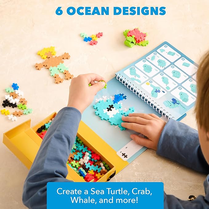 Plus Plus Puzzle By Number Activity Pad, Kids Travel Activities, Interlocking Mini Building Blocks, 3D Puzzle Stem Toy for Kids - Ocean