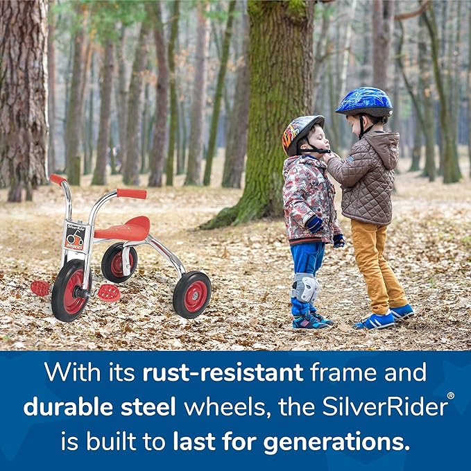 SILVERRIDER Toddler Trike, Kids Tricycle for Preschool, Daycare, Playground Kids Tricycles, Rubber Tires, Silver/Black, 8" Pedal Pusher