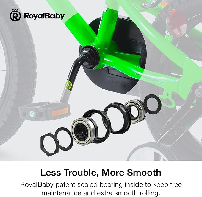 - ๐ฆ๐ฝ๐ฒ๐ฐ๐ถ๐ณ๐ถ๐ฐ๐ฎ๐น๐น๐ ๐๐ผ๐ฟ ๐๐ถ๐ฑ๐. Each bike equipped with RoyalBaby patent sealed bearing for smooth pedaling. Training wheels come with 12, 14, 16 inch bikes, making it easy to maintain balance and learn to pedal for young beginners. The BPA free water bottle adds more joy to the ride. Fully adjustable seat and handlebar will give extra space when kids grow taller