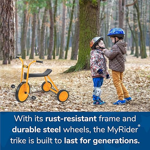 MYRIDER Toddler Trike, Kids Tricycle for Preschool, Daycare, Playground Kids Tricycles, Rubber Tires, Yellow/Black, 14.5" Maxi