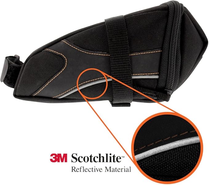 BV Strap-On Bike Bag with Reflective Material - Capacious Saddle Bag with Seperate Divider for Small Items & Room for All Your Essentials - Bike Pouch with Taillight Hanger for Maximum Safety