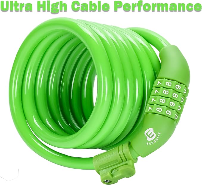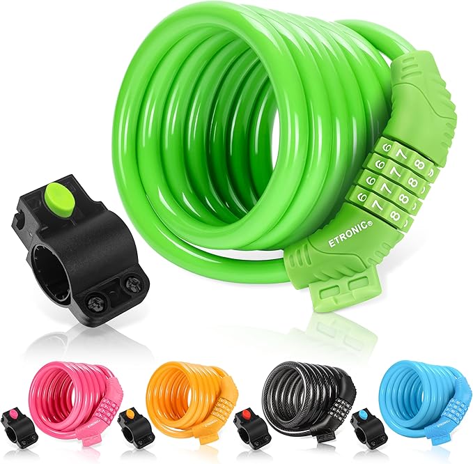 Etronic Bike Lock M6, Cable Lock 6 Feet Long Coiled Security Resettable Combo Combination Lock Bicycle Lock with Mounting Bracket