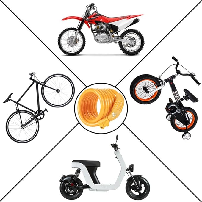 - Bike lock cable is self-coiling and features braided steel for strength and flexibility