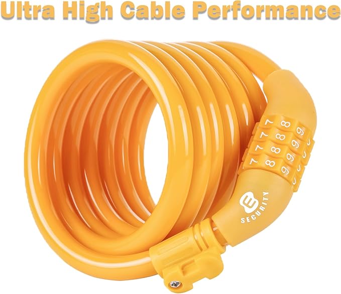 Etronic Bike Lock M6, Cable Lock 6 Feet Long Coiled Security Resettable Combo Combination Lock Bicycle Lock with Mounting Bracket