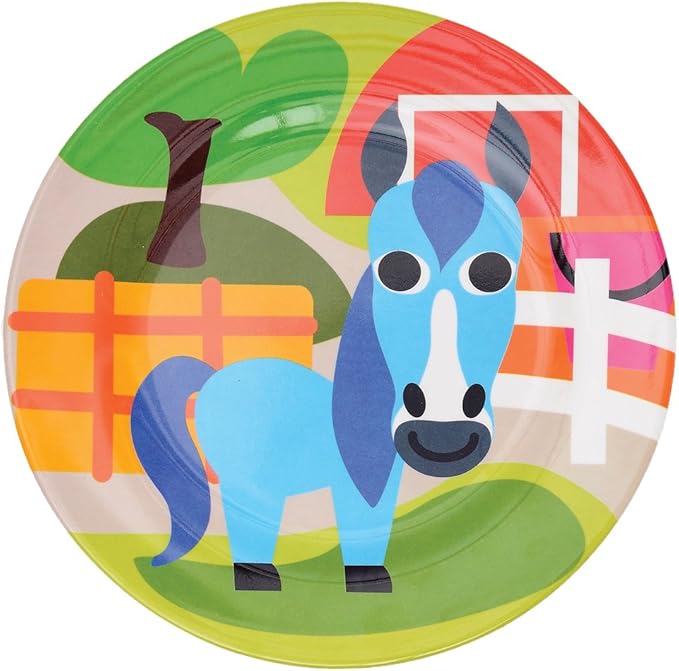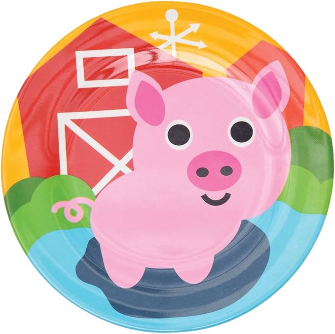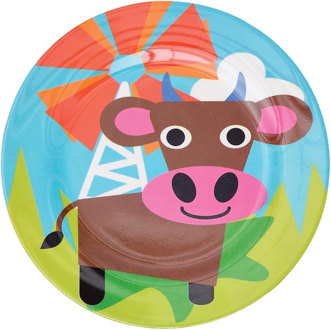 French Bull 4pc Kids Feeding Melamine Tableware Flatware BPA Free Dishwasher Safe, Durable, 4 Count (Pack of 1) Plate Set (Farm)
