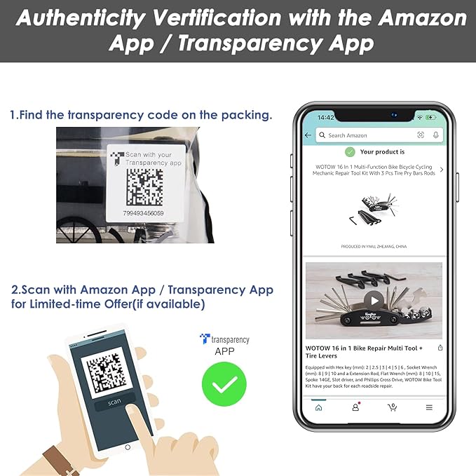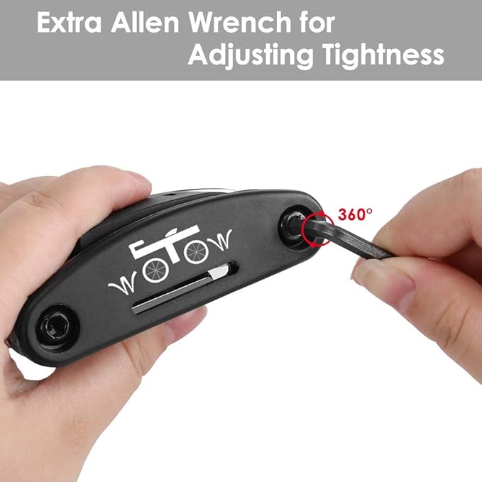 - Riding Companion --- Equipped with Allen Key (mm): 2 | 2.5 | 3 | 4 | 5 | 6, Socket Hex Wrench (mm): 8 | 9 | 10 and a Socket Extension Rod, Flat Wrench (mm): 8 | 10 | 15, Spoke 14GE, Slot & Cross Screwdriver, WOTOW bike multi function tool kit always have your back in each trip.