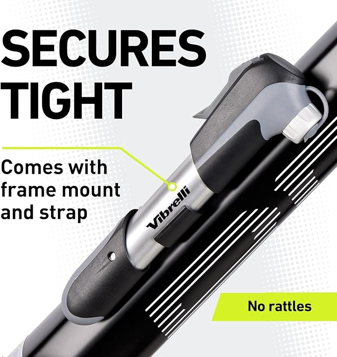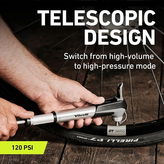 Vibrelli Mini Bike Pump - Presta & Schrader Bicycle Pump - 120 PSI Tire Pump for Road & MTB - No Valve Changing Needed