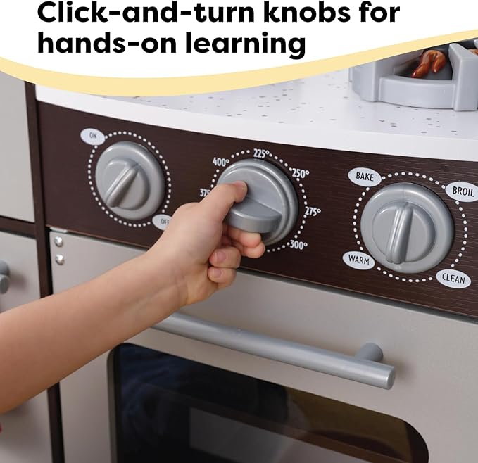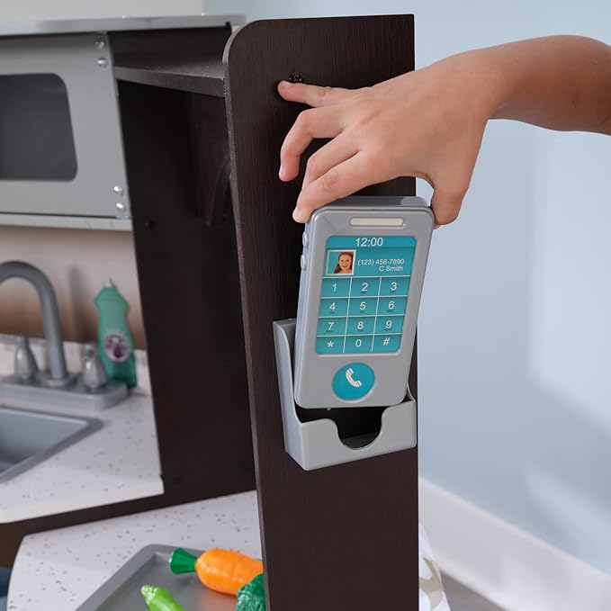 KidKraft Ultimate Corner Wooden Play Kitchen with Lights & Sounds, Play Phone and Curtains, Espresso, Gift for Ages 3+