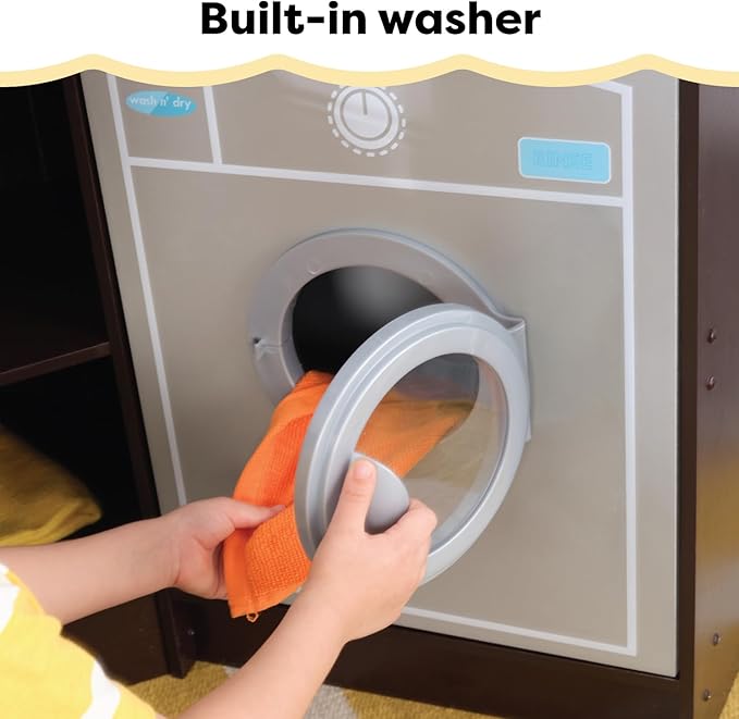 - LAUNDRY TIME: Built-in washer with open and close inset circle window door adds cleaning to the kitchen area.