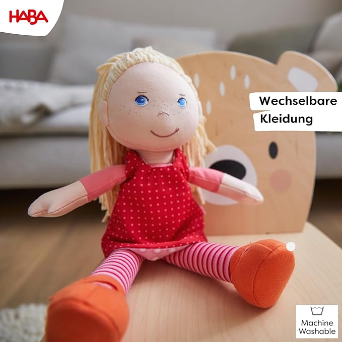 - MACHINE WASHABLE TOYS FOR GIRLS & BOYS: This durable doll is machine washable on cold for long-lasting fun. (Do not spin dry.) Made with HABA's attention to detail, these plush dolls last for years.