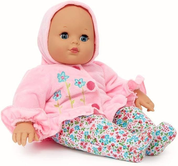 - Baby Cuddles: Dressed in flower printed tights and a soft pink plush hooded jacket with flower accents, this fourteen inch cutie is ready to cuddle