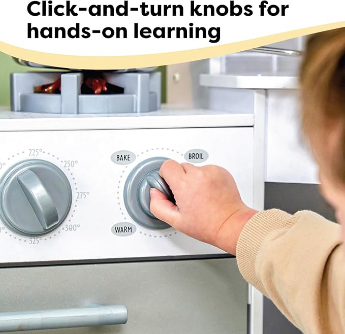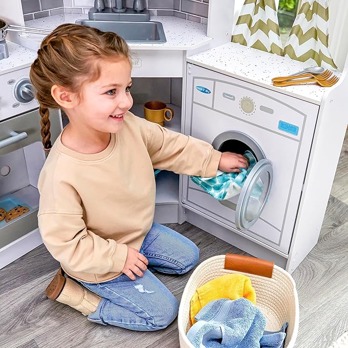 - MADE OF WOOD and EASY ASSEMBLY: Kitchen is made of premium, sustainable materials for long-lasting play you can feel good about. Make assembly easier with more help. Two people can set up this item in approximately 2 hours or less.