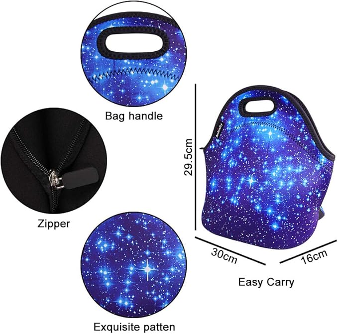 Neoprene Lunch Bag/Lunch Box/Lunch Tote/Picnic Bags Insulated Cooler Travel Organizer (Blue Stars)