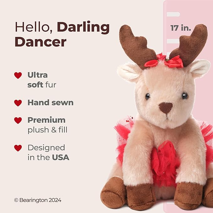 Bearington Darling Dancer Ballerina Reindeer Stuffed Animal, 7 Inch Stuffed Reindeer Christmas Doll, Ideal Christmas Plush Toy Gift for Toddlers, Kids & Teens, for Ages 3-14