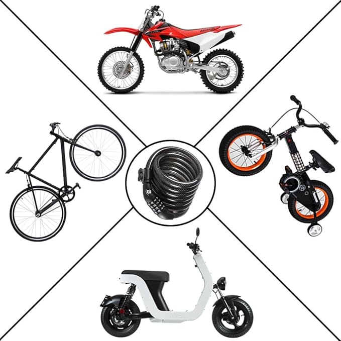 - Bike lock cable is self-coiling and features braided steel for strength and flexibility