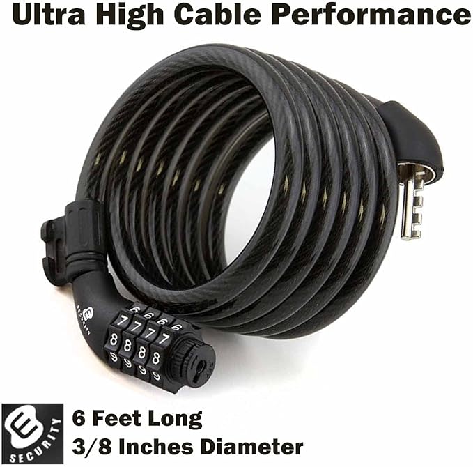 Etronic Bike Lock M6, Cable Lock 6 Feet Long Coiled Security Resettable Combo Combination Lock Bicycle Lock with Mounting Bracket