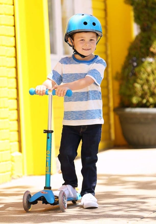 - Micro's 3-wheeled Mini Deluxe kickboard with Lean-To-Steer design, offers a stable ride that supports toddlers and small children as they master balance and coordination.
