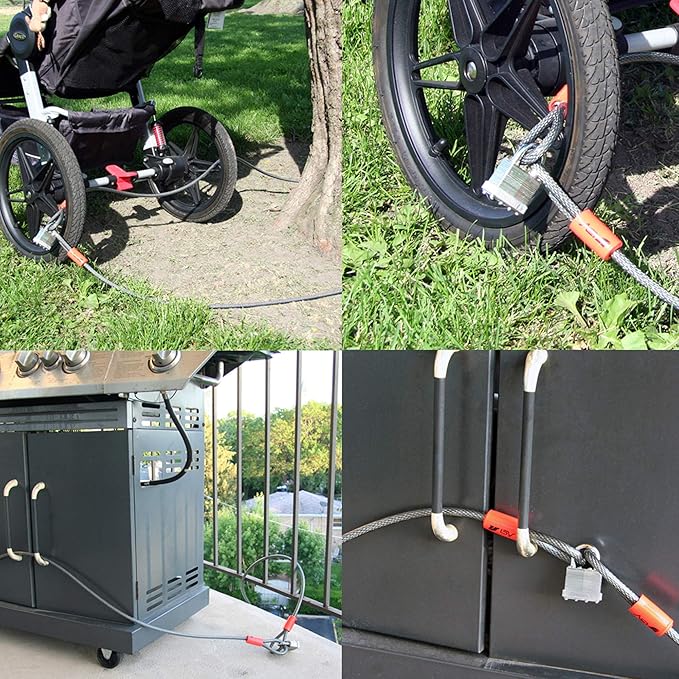 - Tailored Sizes for Every Need - Choose the perfect size for your security requirements: short cable lock 2.5FT with 5mm (3/16 inch) thickness or 4FT, 7FT, 15FT, 30FT at 10mm (3/8 inch) thickness. Each heavy duty cable lock features 7 robust braided steel cables for reliable cut resistance & maximum security.