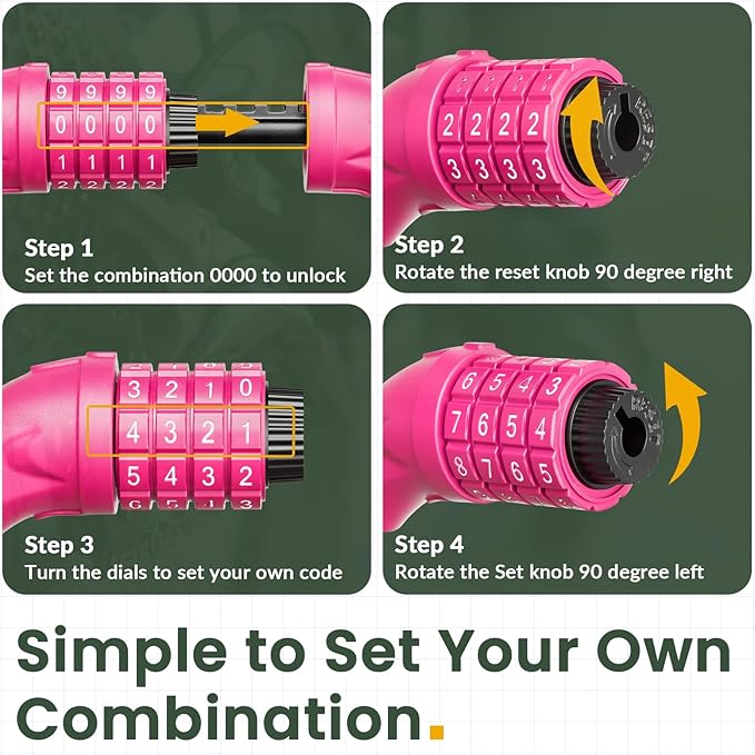 - Security & portable: Our bike cable lock provide a 4-code password design, you can set up 1,0000 different combination code