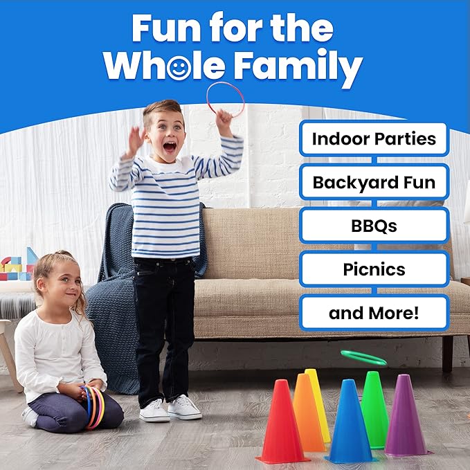 - FUN FOR EVERYONE – Cone and bean bags are a classic favorite. Just toss the rings and be the one who rings the cone first! Make it more of a challenge by playing bean bag toss game or tic tac toe bean bag toss, bean bag buckets, or hoop bean bag.