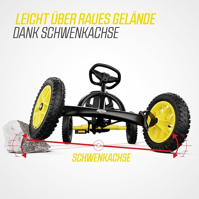 Berg Toys Buddy Cross Pedal Go Kart for Kids and Adults – Adjustable Ride On Toy for Ages 4-8 – Go Karts with BFR System,Outdoor Pedal Car for Kids (Yellow)