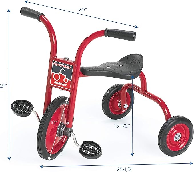 CLASSICRIDER Toddler Trike, Kids Tricycle for Riders Ages 3 and up, Preschool, Daycare, Playground Kids Tricycles, Rubber Tires, Red/Black, 10" Pedal Pusher