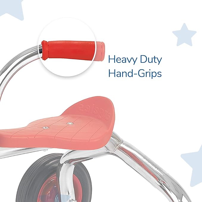 - MODERN CHROME PLATING: This tricycle has a sleek, modern design parents & children both adore. Chrome shines like the chrome on your favorite muscle car. Any tike who motors around the neighborhood on this dream machine can stand proud.