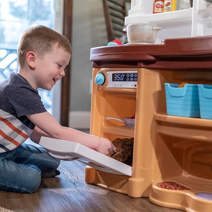 Step2 Fun with Friends Kids Kitchen Playset, Indoor/Outdoor Kitchenette, Interactive Play with Lights and Sounds, Durable Plastic, Includes 25 Piece Toy Accessories, Toddlers 2+ Years Old, Tan