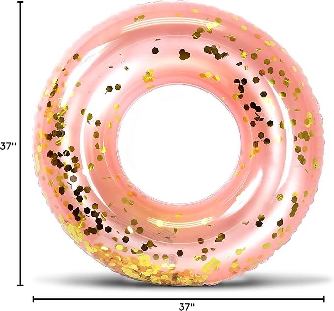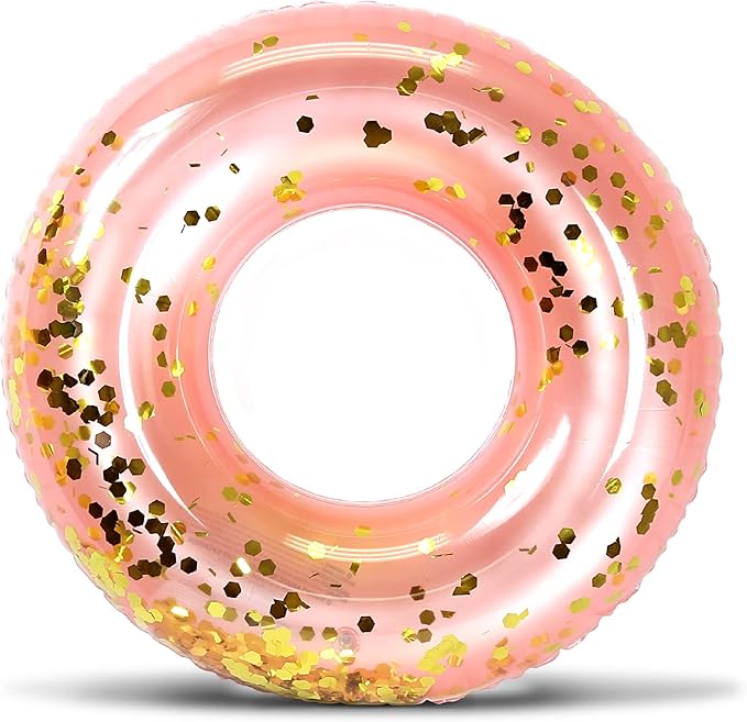 - HIGH-QUALITY INFLATABLE POOL FLOATS FOR KIDS AND ADULTS - Built to last from one summer to the next, Rose Gold Confetti inflatable tube for adults and kids is a heavy-duty pool ring float made of premium PVC vinyl. Crafted with UV resistance & tear resistance to protect the inflatable pool loungers from color fading or cracking. Eye-catchy rose gold design with sparkling confetti. Float tubes can be inflated by mouth, manual pump, or air pump.