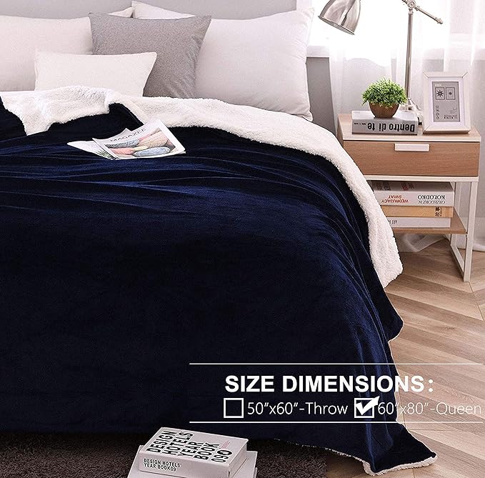 NANPIPER Sherpa Blanket - Super Soft Fuzzy Flannel Fleece/Wool Like Reversible Velvet Plush, Thick Warm for Winter (Twin Size 60"x80", Navy Blue)