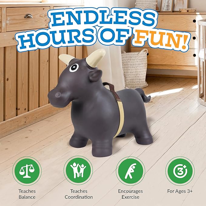 - REALISTIC BULL HEAD FOR AUTHENTIC RODEO EXPERIENCE: These bouncy bull farm toys feature a realistic bull head design and a bull rope for the most authentic play rodeo experience! The inflatable bull is designed with four legs to help stabilize and support younger children while still giving them plenty of bounce.