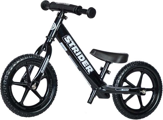 Strider 12” Pro Bike, No Pedal Balance Bicycle for Kids 1 to 4 Years - Includes Safety Pad, Padded Seat, Mini Grips & Flat-Free Tires - Tool Free