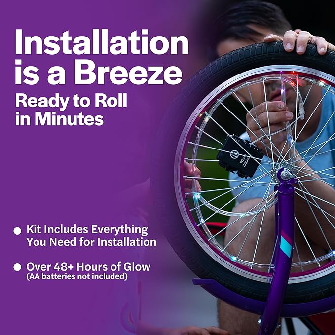 - INSTALLATION IN A SNAP - Our easy-to-install bike spoke lights are battery-powered and ready to go. Perfect as kids bike accessories for boys, and girls of all ages, and even bike enthusiasts at raves like burning man. Ride and shine in style
