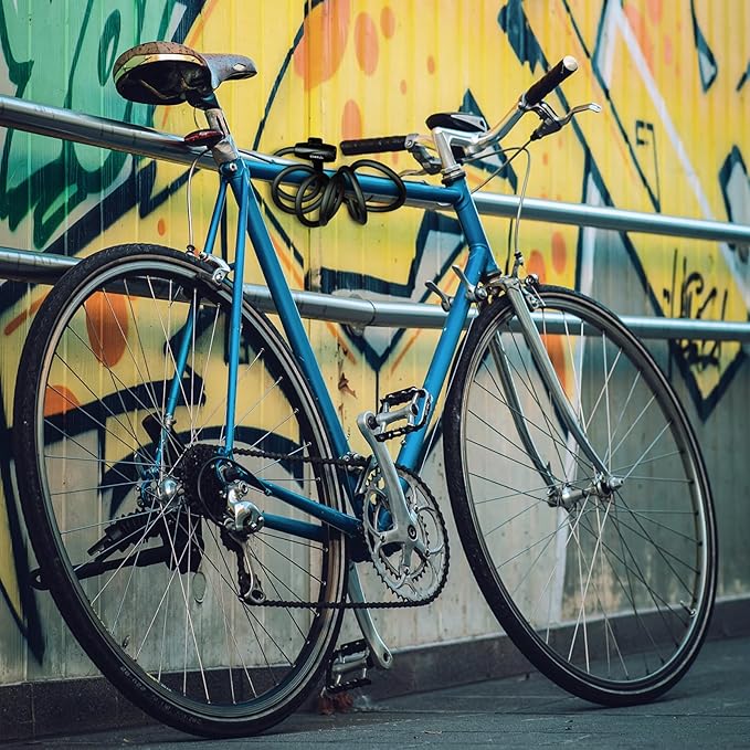 - Secure cable bike lock: Flexible 12mm(1/2 inch diameter) steel cable prevent your bike from strong cutting, and the PVC coating helps to prevent from scratching and rusting.