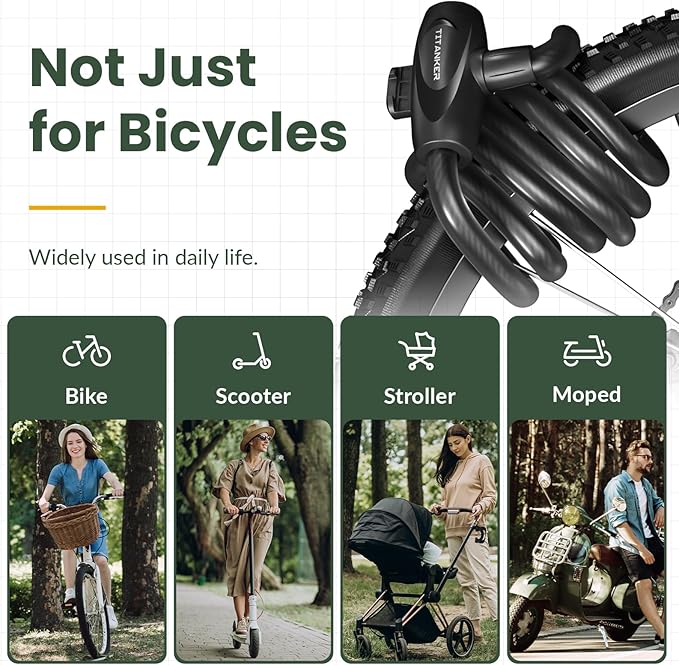 Titanker Bike Lock, 1/2 Inch Thick Bike Lock Cable Coiled Secure Bicycle Lock with Keys Scooter Lock Bike Locks Heavy Duty Anti Theft Bike Cable Lock with Mounting Bracket (4Feet, 6 Feet)