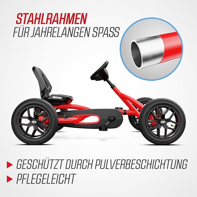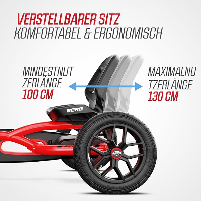Berg Toys Buddy Redster Pedal Go Kart for Kids – Adjustable Ride On Toy for Ages 4-8 – Go Karts with BFR System, and Adults Outdoor Pedal Car for Kids (Red)