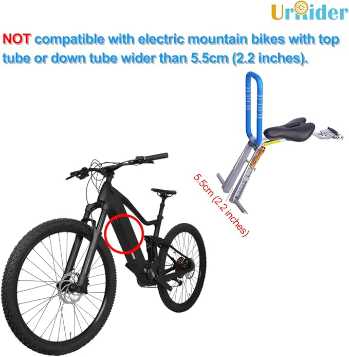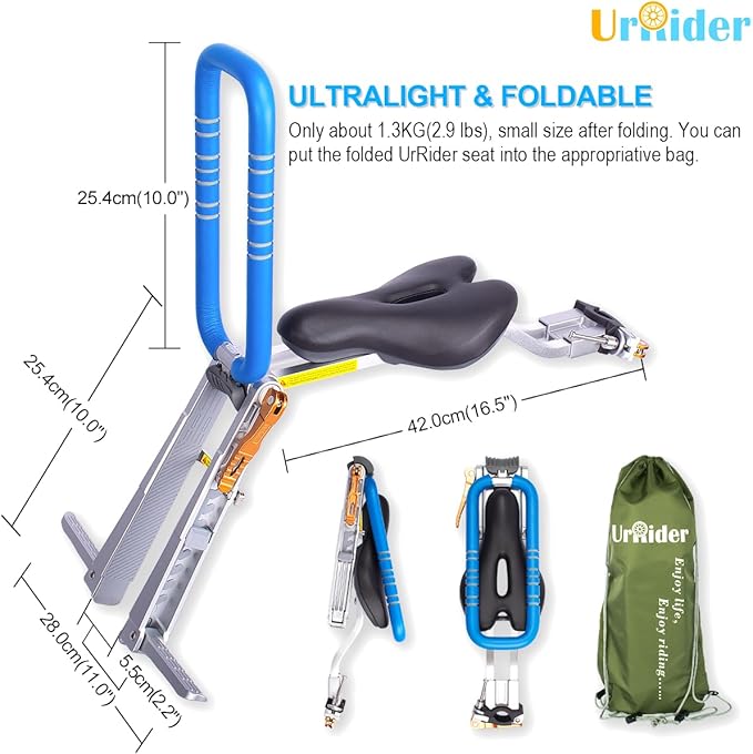 - 【EAEY INSTALLATION】 -- The UrRider child bike seat installs (60 secs) and removes (30 secs) effortlessly, no tools required. Kids bike seat for front of bicycle, Mountain Bikes, Hybrid Bikes. (Note: Check compatibility with size guidelines.)