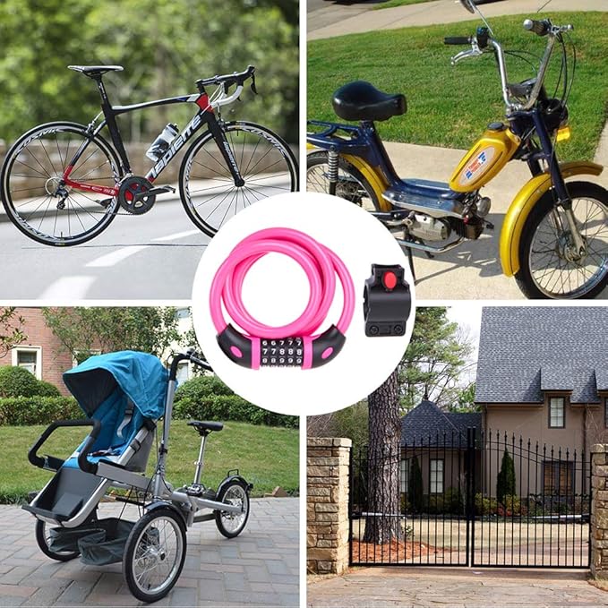 - MULTI-PURPOSE: The cable is 4 feet, long enough to lock 2-3 bikes together, or lock your bike to a tree, gate, fence, railing, thick pole and others. The lock can also be used for motorcycles, scooters, skateboards, grills, ladders, doors, lawnmowers and many others.