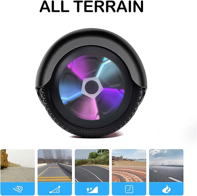 - Hoverbaord Built-in Wireless Speaker: Built-in wireless speaker can be easily connected to portable devices in second, just enjoy your favorite music or books without wearing headphones. Make your hoverboard the coolest one with extraordinary sound effect. Awesome Led design with color lights and music, give you a colorful experience.