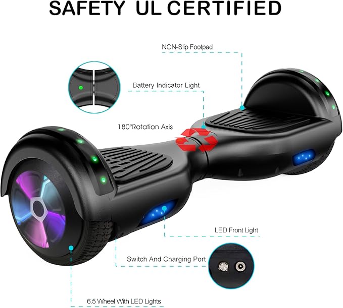 LIEAGLE Hoverboard, 6.5" Self Balancing Scooter Hover Board with Bluetooth Wheels LED Lights for Kids Adults