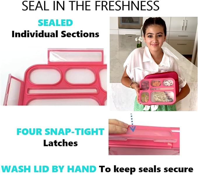 - MODERN, DURABLE + ECO-FRIENDLY bento box has double-wall construction. Silicone overlay on lid delivers an extra-sturdy design. HAND-WASH the LID to maintain seal shape. Seal is VERY TIGHT and requires aligning the lid. Toddlers or young children would need assistance.
