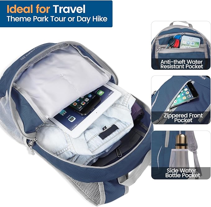 ZOMAKE Ultra Lightweight Packable Backpack 25L - Foldable Hiking Backpacks Water Resistant Small Folding Daypack for Travel(Navy Blue)