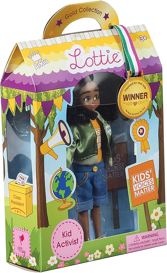 - Kid Activist Lottie Doll | Cute Black Dolls For Girls & Boys | Super Cool Outfit | Doll On A Mission! | For 6 year old and up! CUTE BLACK DOLL inspired by real-life kid activist, Mari Copeny. Wears "Kids' Voices Matter" top.COOL DOLL'S OUTFIT & doll accessories include jacket, shorts, sneakers, tiara, megaphone & more!BROWN HAIR & BROWN EYES Much more than princess fashionistas, these dolls will inspire kids to act!LOTTIE DOLLS are small 7 inch dolls, making them the perfect size for litt