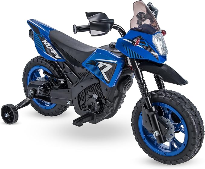 Huffy Ride On Motorcycle for Kids, Ideal for Ages 2-5 Years, 6V Rechargeable Battery, Training Wheels, Realistic Engine Sounds, Max Weight 65lbs, 2 MPH, Blue