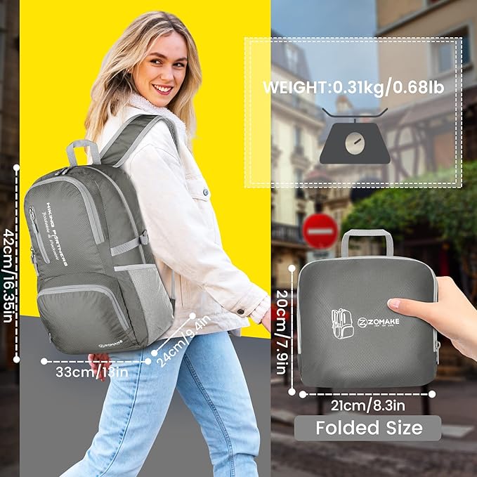 ZOMAKE Lightweight Packable Backpack - 35L Light Foldable Hiking Backpacks Water Resistant Collapsible Daypack for Travel(Dimgray)