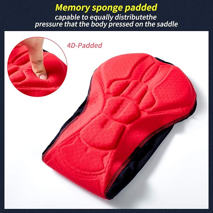 • 4D high-density breathable Gel cushion is adopted. Its good air permeability and high elasticity and resilience of sponges will effectively relieve the hip pain or discomfort caused by cycling.