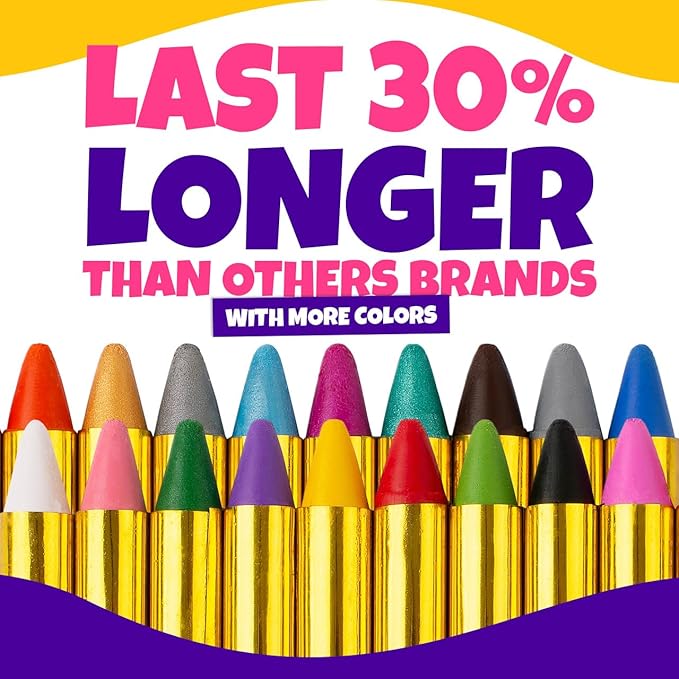 - π¨ π©πππ₯ππ‘π§ ππ’ππ’π₯π¦ πͺππ§π πππ¦π¬ ππ£π£πππππ§ππ’π‘ - Our facepaint crayons glide smoothly on the skin, offering a brilliant and bright palette of colors, ideal for creating various designs with ease. At 3.25" long our waterproof face & body paint crayons are 30% longer than any other brand on the market ensuring durable wear for hours of playful imagination. With enough face makeup to be used for 100+ faces they are perfect for parties and events.
