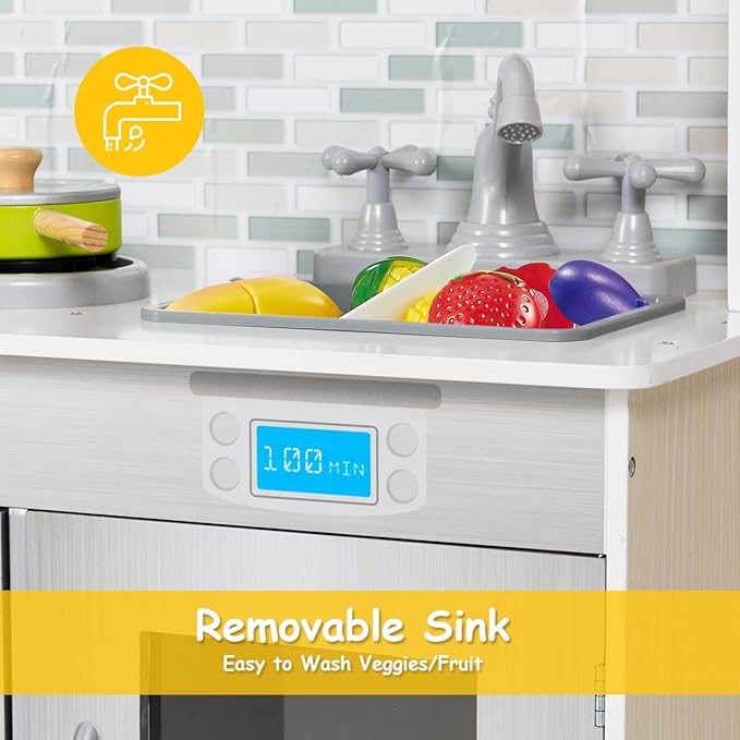 - SELECTED PREMIUM MATERIAL - Constructed by solid MDF, Costzon kids kitchen playset is durable and stable for your children to play. Plaint in child-friendly paint which is odorless so that your kids can play it freely. They can play like a master chef for years of wear and tear.
