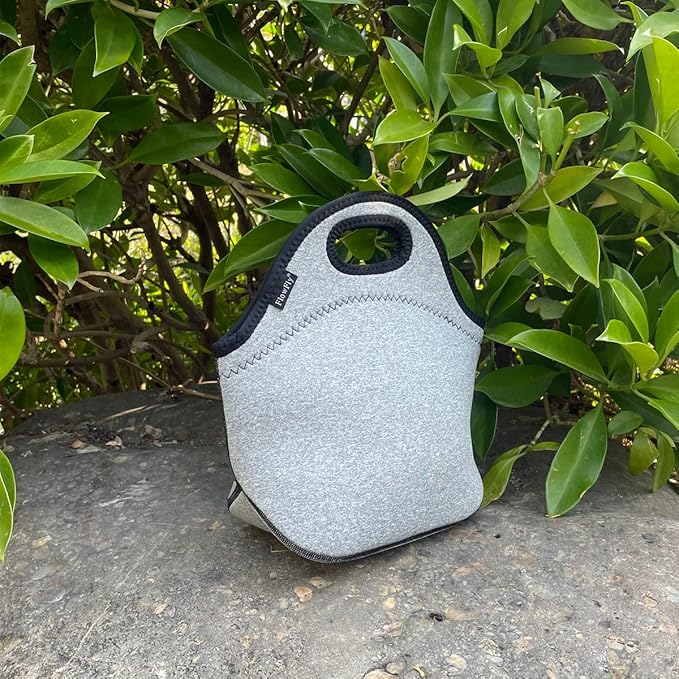 FlowFly Neoprene kids Lunch box Insulated Soft Bag Mini Cooler Thermal Meal Tote Kit for Boys, Girls,Men,Women,School,Work, Office, Grey