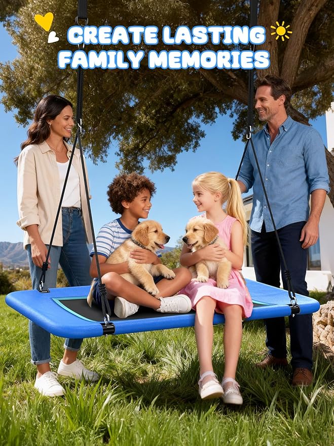 - [Heavy-Duty 700lb Capacity & Reinforced Steel Frame] - Experience unparalleled stability with our extra-large 60" x 32" rectangular tree swing. Engineered with a reinforced steel frame and tight-weave fabric, it safely holds up to 700 lbs—comfortably fitting 5 children or 2 adults. It's built for years of family fun and active play, providing a secure and reliable swing every time